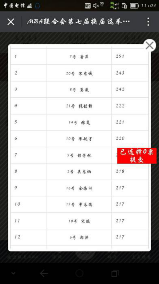 2017年6月17-21日,英国正版365官方网站第七届MBA联合会换届网上投票活动圆满完成。所有在校MBA学生积极参与,行使了自己的选举权,踊跃参加了投票活动。本次换届选举活动,通过MBA在校学生微信投票方式,选举产生第七届MBA联合会主席团成员12人。