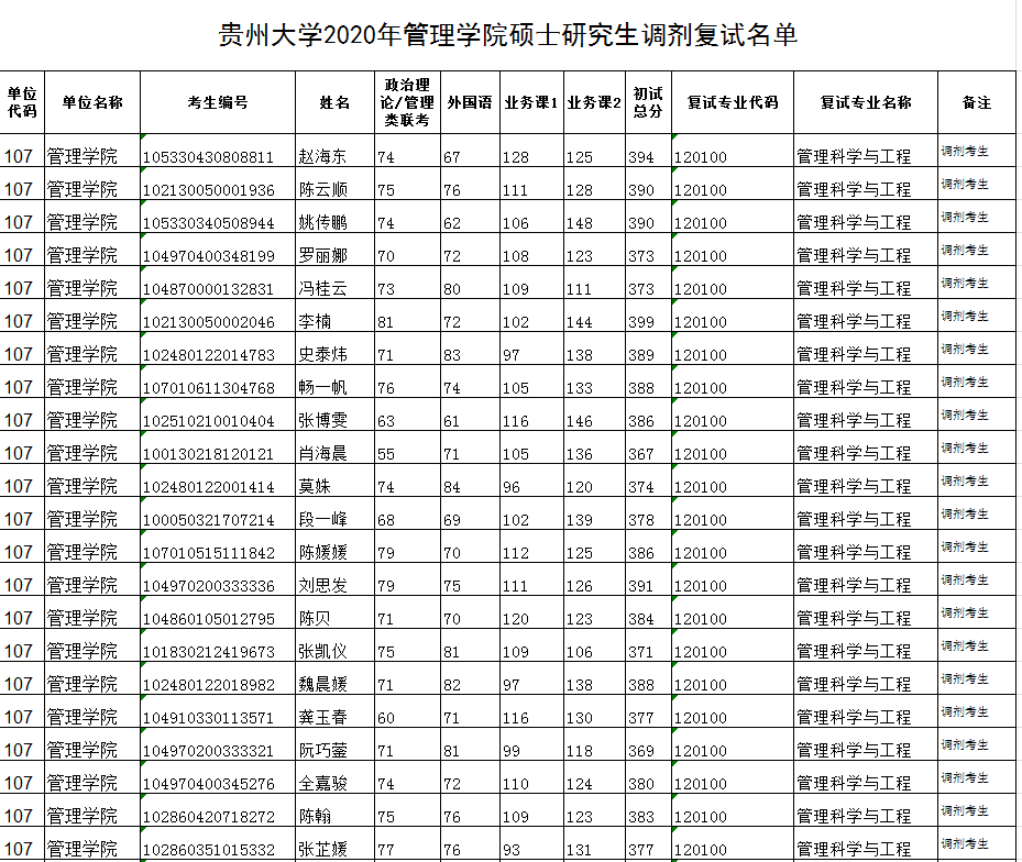英国正版365官方网站2020年英国正版365官方网站硕士研究生调剂复试名单