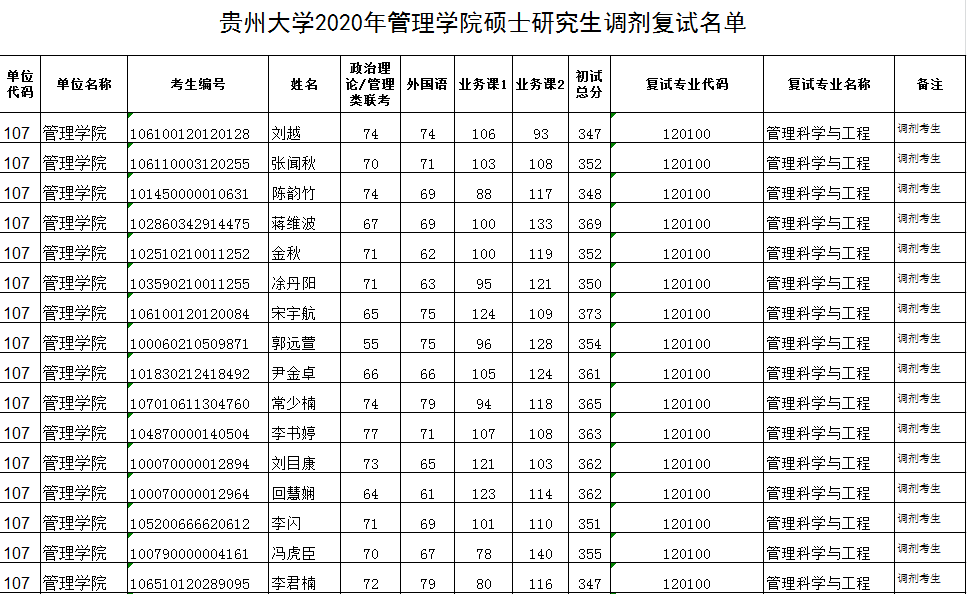 英国正版365官方网站2020年英国正版365官方网站硕士研究生调剂复试名单