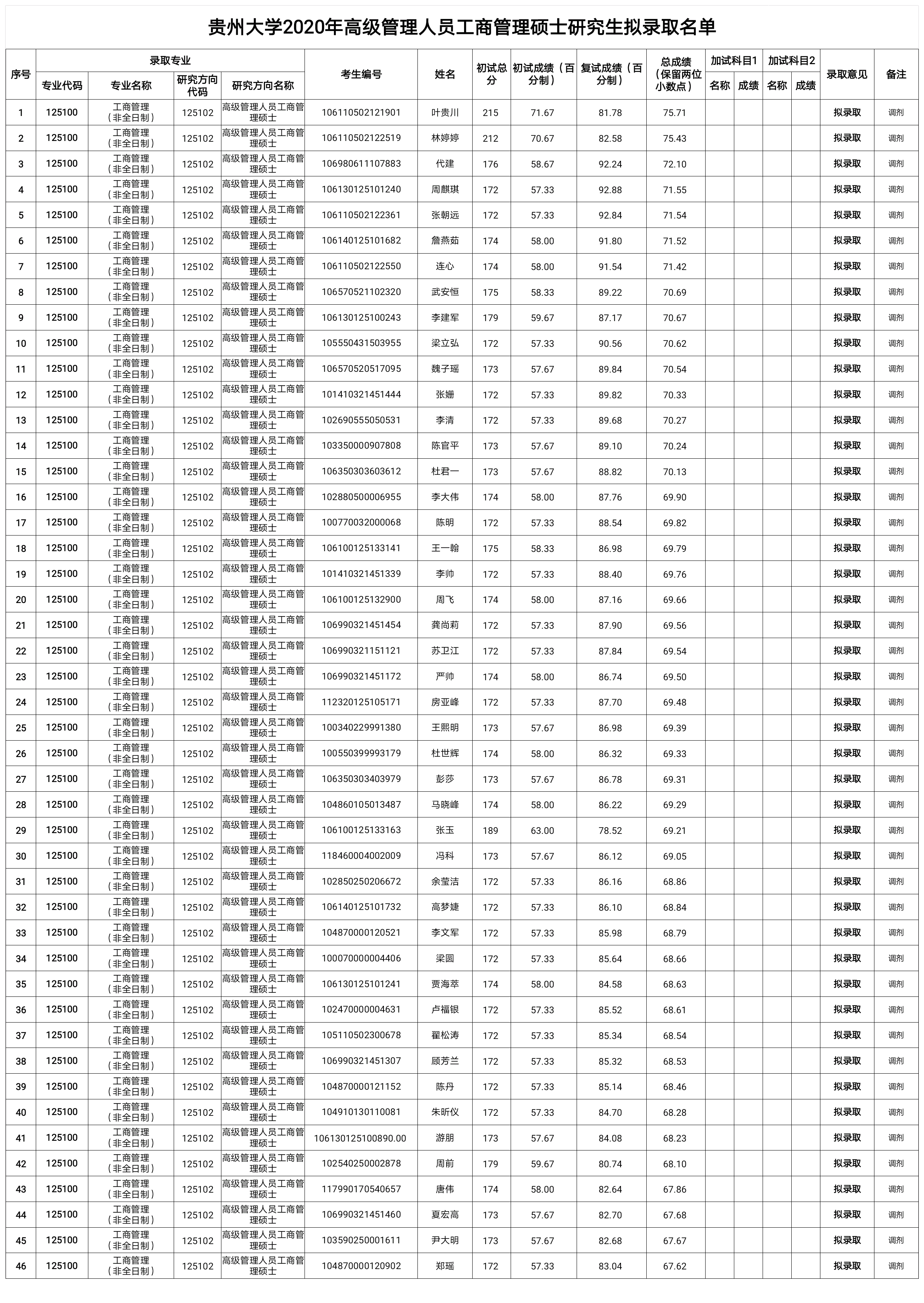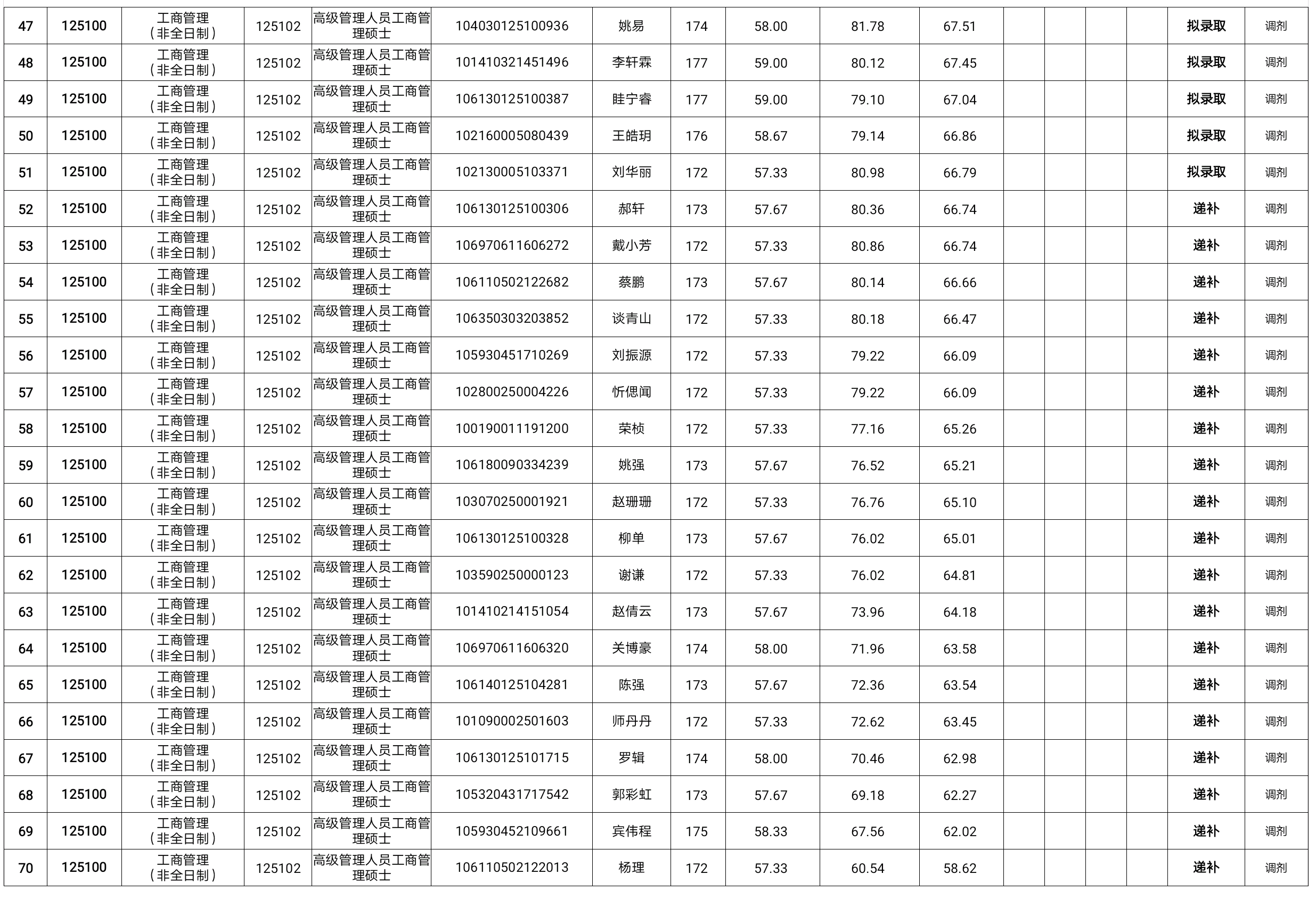 英国正版365官方网站2020年高级管理人员工商管理硕士研究生拟录取名单