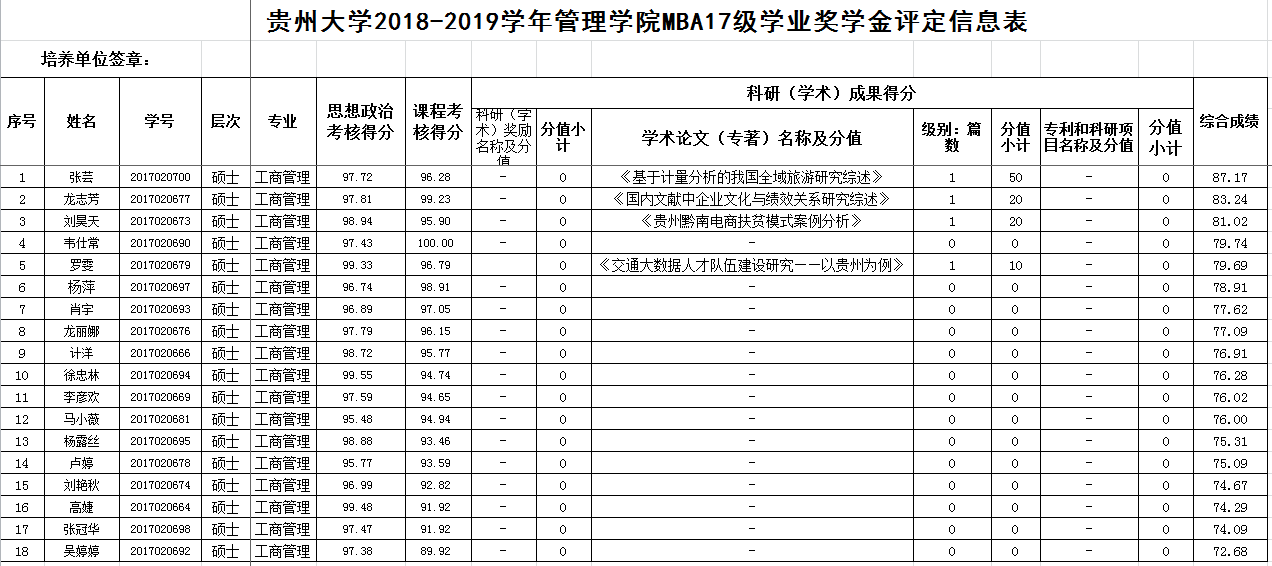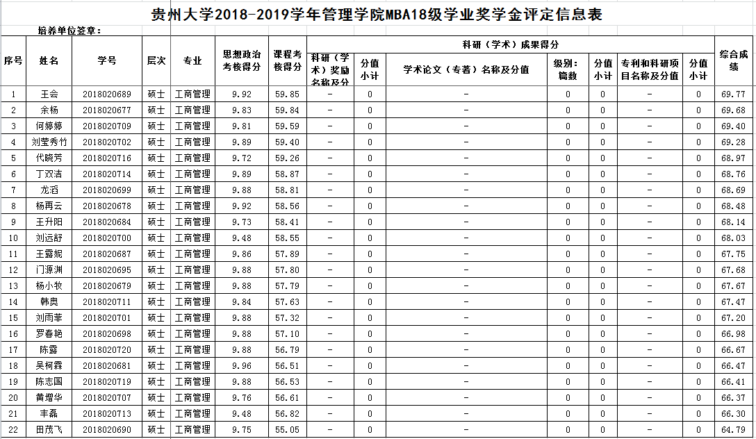 英国正版365官方网站2018-2019学年英国正版365官方网站MBA17级、18级学业奖学金评定信息