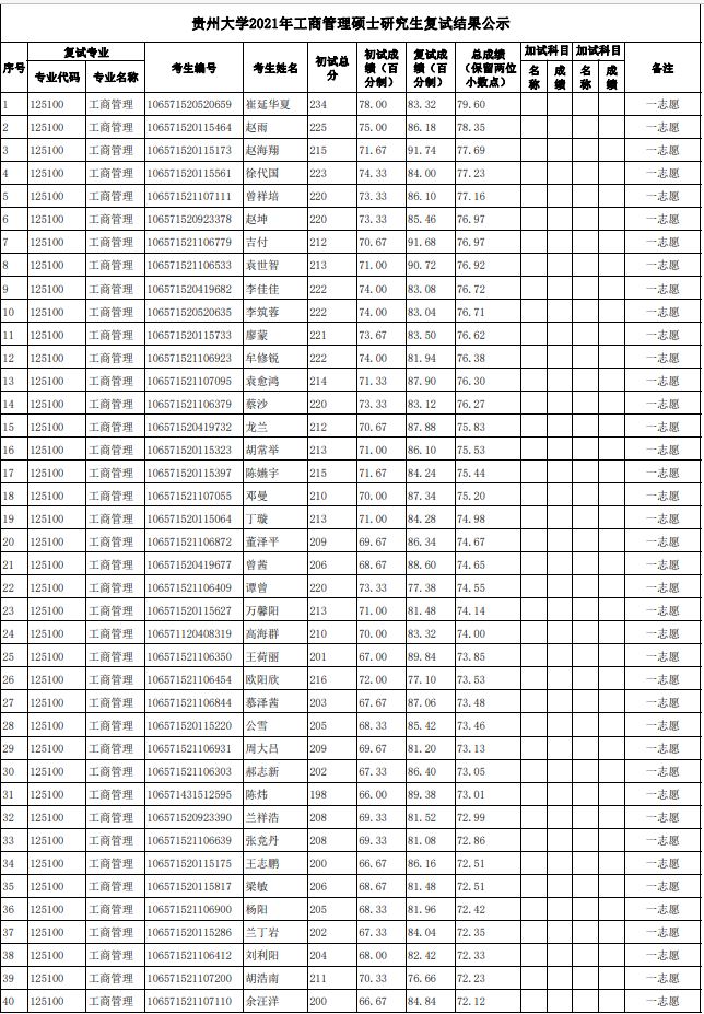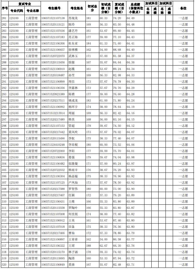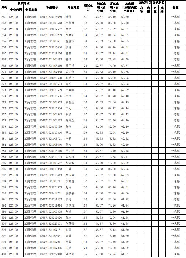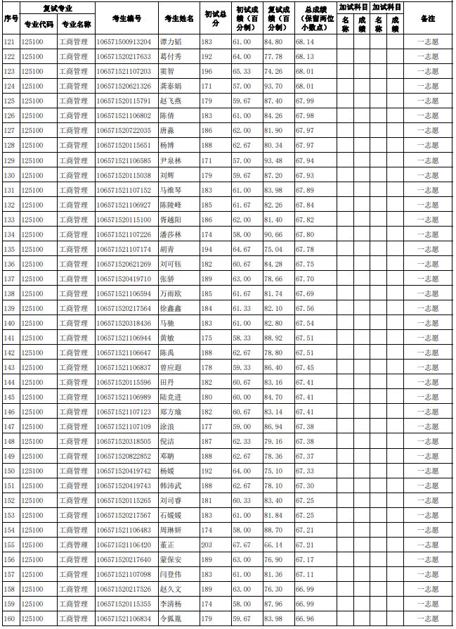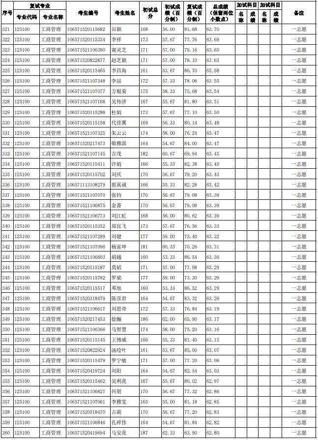 英国正版365官方网站2021年英国正版365官方网站工商管理硕士(MBA)研究生复试结果公示