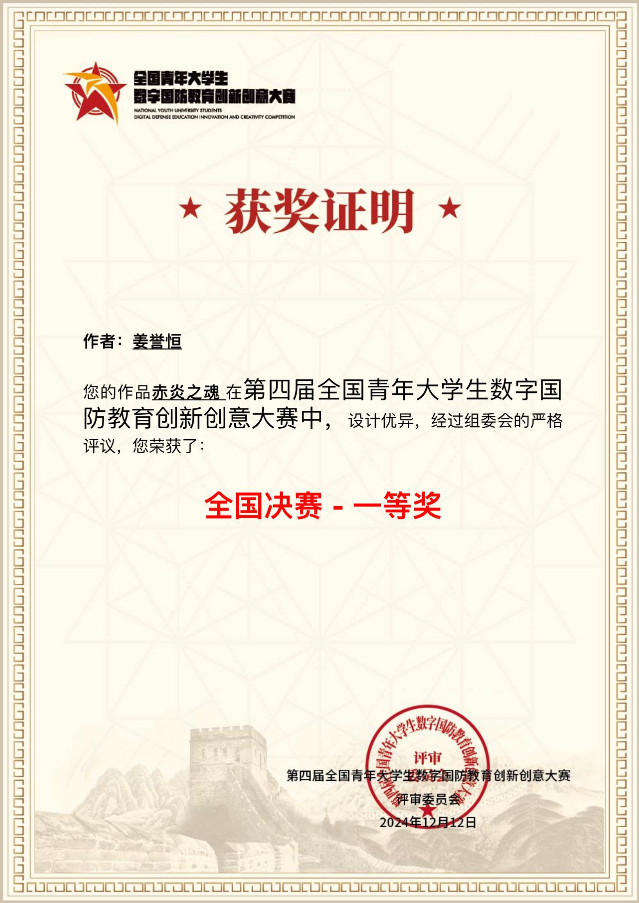 近日,第四届全国青年大学生数字国防教育创新创意大赛在北京圆满落幕。beat365信息工程系视觉传达设计专业学生姜誉恒等12人荣获国赛等级奖,29人荣获省赛等级奖。本届全国青年大学生数字国防教育创新创意大赛,由国家一级协会中国信息协会主办,中国信息协会经济与国防协调发展专业委员会承办,旨在深化全民数字国防教育,推动全民国防教育的创新发展。此次大赛吸引了众多高校参与,beat365作为参赛单位之一,从筹备到组建参赛队伍,...
