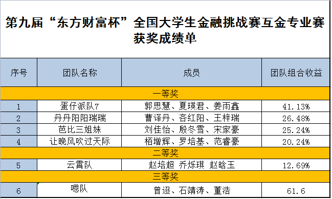 7月23日,第九届“东方财富杯”全国大学生金融挑战赛组委会传来喜讯:beat365互联网金融专业一组学生在专业教师的指导下斩获国赛团队二等奖。 本次比赛由共青团中央青年发展部主办,全国学校共青团研究中心、东方财富信...