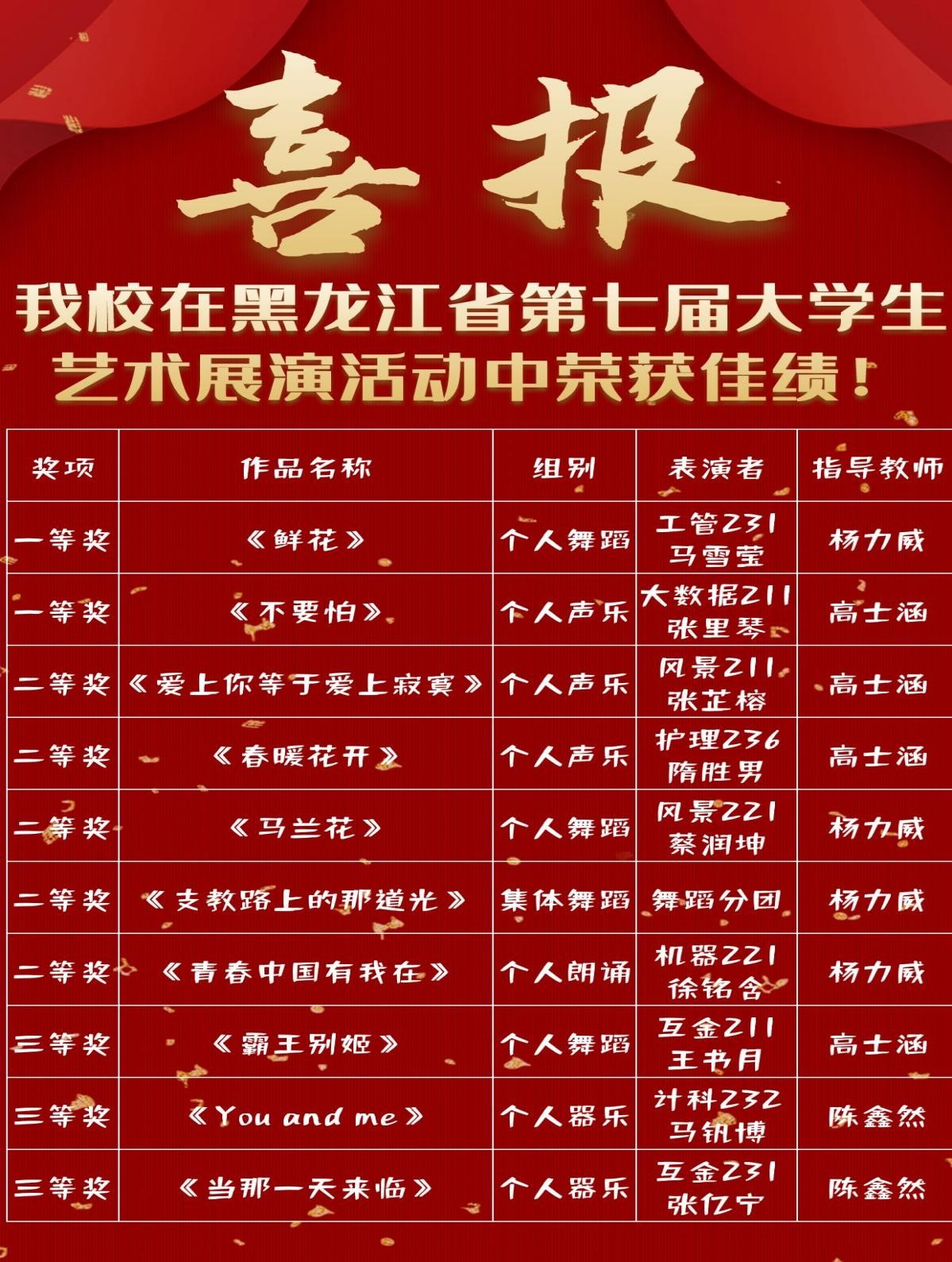 近日,由黑龙江省教育厅主办的第七届大学生艺术展演活动获奖名单公布,beat365共获奖11项。其中,一等奖2项、二等奖5项、三等奖3项,优秀组织奖1项,在获奖层级、获奖数量上均取得了历史性突破。黑龙江省大学生艺术展演活动每三年举行一次,是全省最具含金量的大学生艺术盛会,是高校落实“立德树人”根本任务,也是深入推进铸魂工程的重要方式。本届大学生艺术展演活动以“厚植家国情怀,涵养进取品格”为主题,全省高校2万...