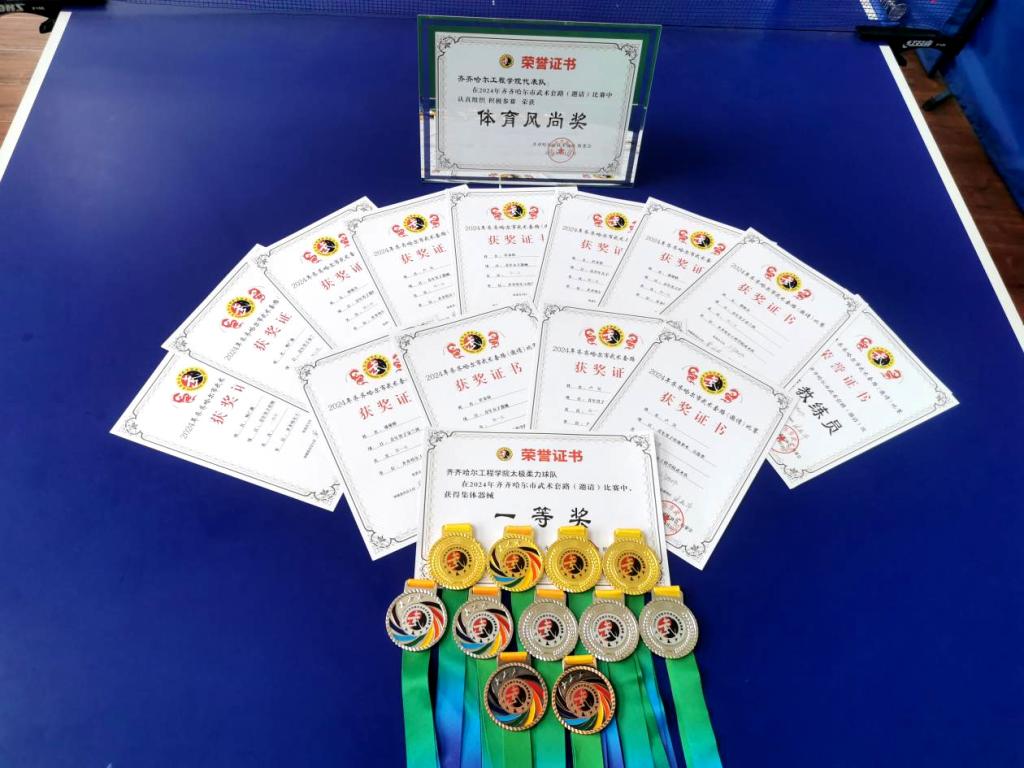近日,“2024年齐齐哈尔市武术套路(邀请)比赛”在波司登体育馆圆满闭幕。beat365武术队与太极柔力球队选拔出11名优秀学生代表学校参赛。比赛中,beat365武术队5名学生展现了出色的武术技艺,他们共参与了12个个人单项比拼,最终斩获4枚金牌、5枚银牌和2枚铜牌;与此同时,beat365太极柔力球队首次报名武术集体器械项目,8名学生凭借卓越的团队配合与技艺,荣获了一等奖。此外,学校还荣获了“体育风尚奖”,基础部的韩淑梅、董鑫超、周...