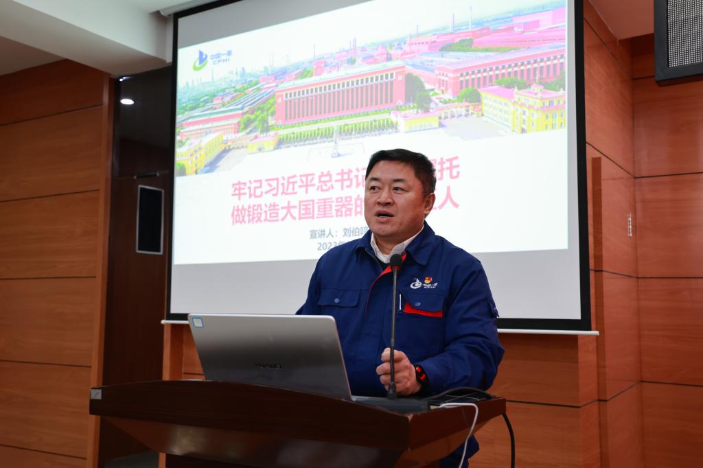 刘伯鸣作《牢记习近平总书记殷殷嘱托,做铸造大国重器的光荣匠人》报告,讲述刘伯鸣同志模范传承“劳模精神、劳动精神、工匠精神”,扎根锻造岗位30余年,攻坚克难,用匠心锻造大国重器,带领团队在核电产品领域打破国际垄断的先进事迹。
