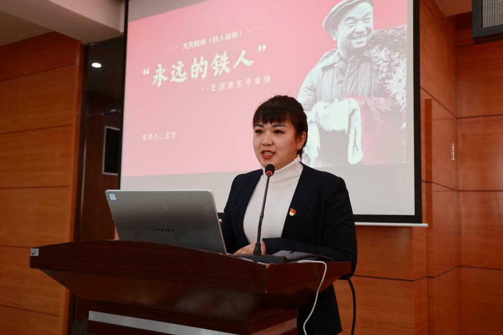 王宁以《永远的铁人——王进喜生平业绩》为主题从不同角度和个人切身实际,讴歌了“爱国、创业、求实、奉献”为主要内涵的大庆精神(铁人精神)。