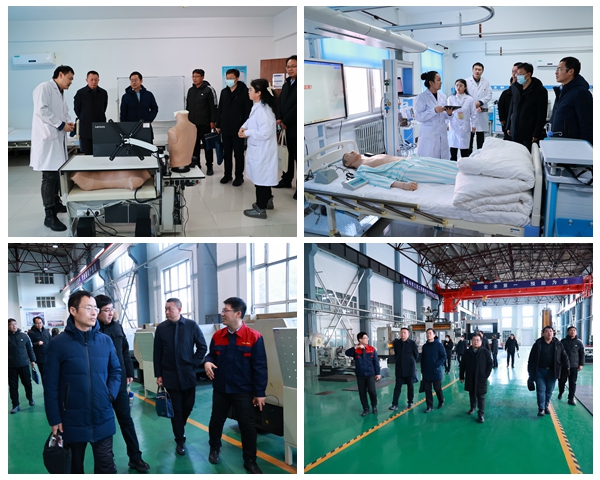 在学校领导的陪同下,考察团成员参观了学校齐三机床、大健康教育实训教学中心。