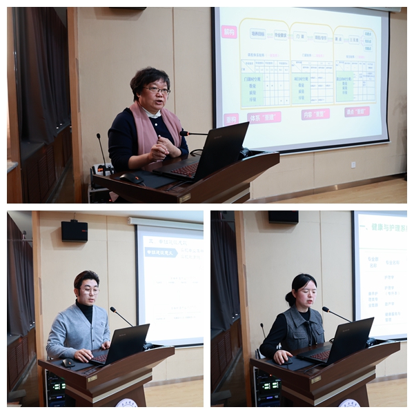 教师发展中心主任潘宇介绍了“四真三化”(FT)课程开发模式的内涵及实践逻辑。机电工程系敖林喆、健康与护理系郭玲玲分别展示了机电系、护理系产业学院的发展与校外课堂建设方面的情况。