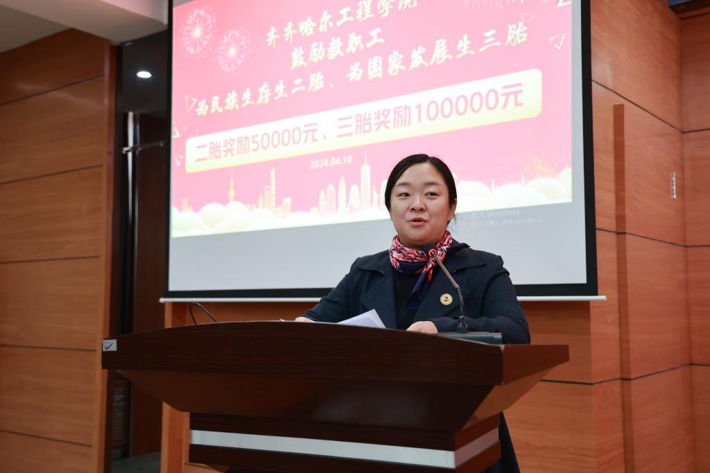 学校鼓励年轻教职员工积极生育,开创了本市乃至省内高校为教职员工发放二胎生育奖励的先河,希望不远的将来会有更多教职员工获得此项奖励。让我们从自身做起,引领行业励志前行、担当作为,为构建生育友好型社会做出积极贡献。