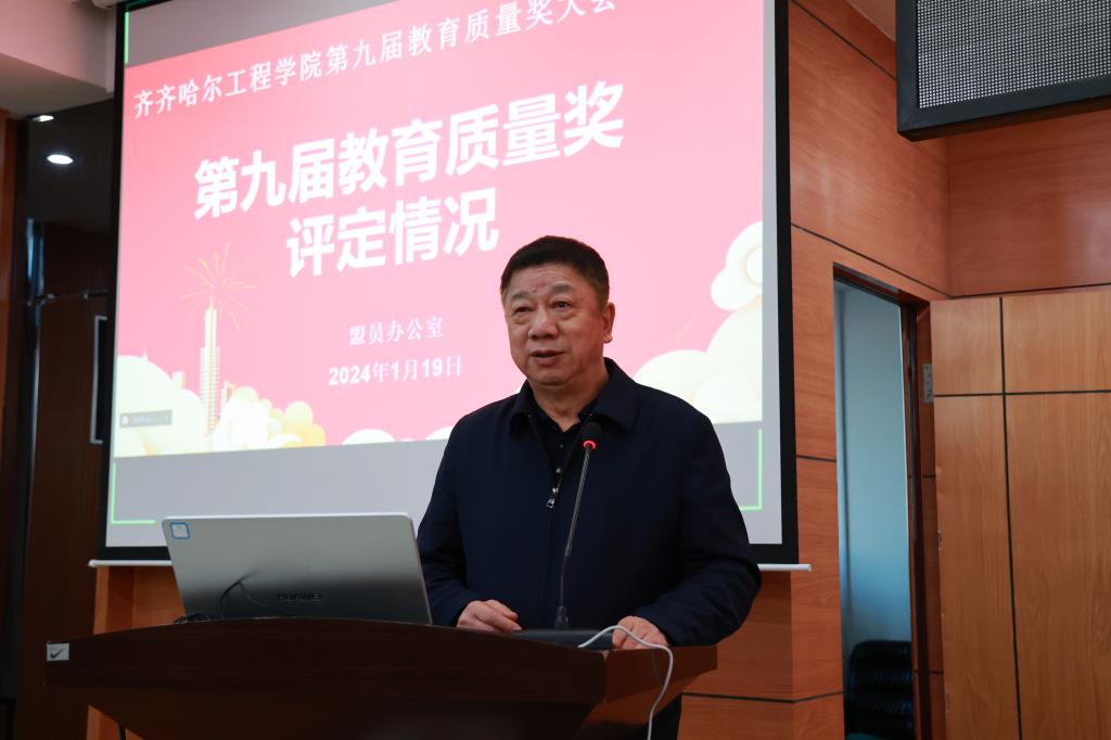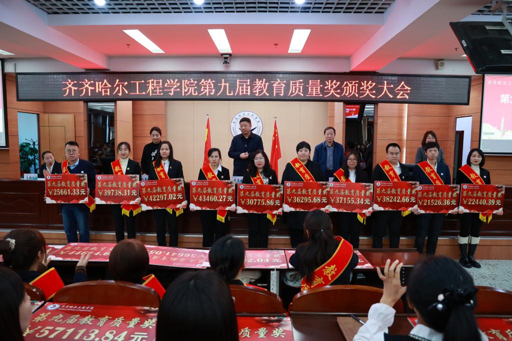 院长、党委副书记曹然彬宣读《关于颁发beat365中文官网第九届教育质量奖的决定》,决定授予机电工程系曹克晶等197名盟员第九届教育质量奖,奖励总额共计440.8万元,个人最高奖励金额达6万元。