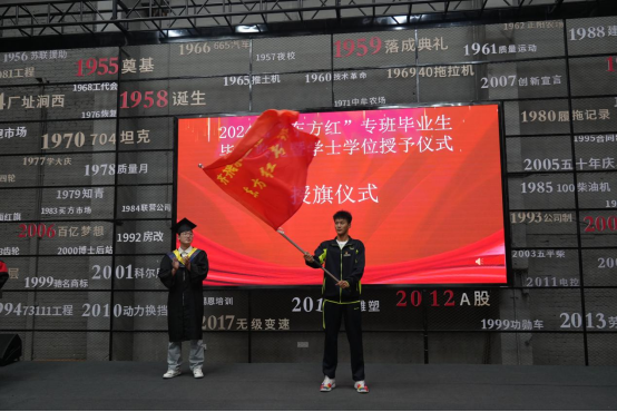 “东方红专班”的实践,有效推动了人才培养模式和服务产业模式创新,把校企合作推向新的高度,达到双方互利共赢,共同发展的目的。希望各位毕业生心怀梦想,心中有光,永远保持一颗热爱学习的心,不断提升自我,勇往直前,在中国一拖集团有限公司发光发热,在这片热土上,绽放出属于自己的璀璨光芒。