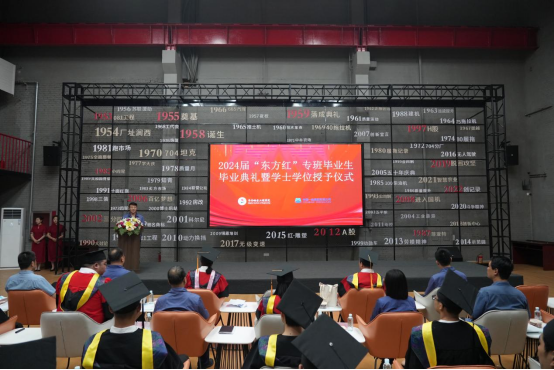 毕业典礼由敖林喆主持。敖林喆首先说明了“装备制造产业学院——东方红专班”成立的目的和意义,介绍了校企合作的成果以及“东方红”专班学生的成长历程和取得的成就。他表示,本次毕业典礼既是东方红首期专班的毕业典礼,也是学校首次在合作企业举办的毕业典礼,更是双方在探索校企合作、产教融合之路上的重要里程碑,意义非凡。
