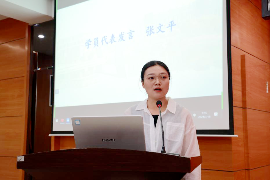 马克思主义学院教师张文平代表新教师发言,她以感谢、行动、展望三个关键词表达了新老师对未来的憧憬和展望。