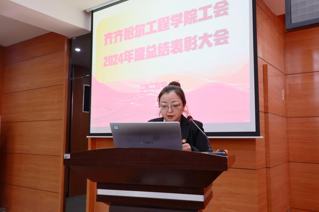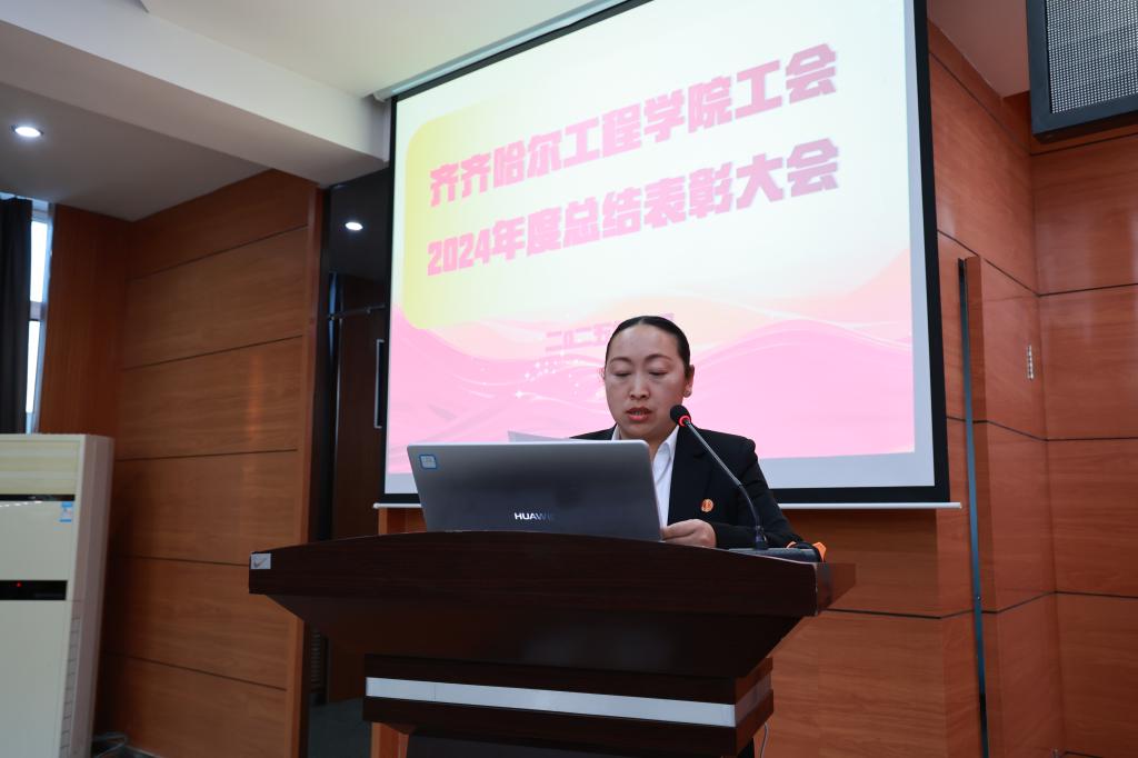 1月10日下午,学校工会2024年度工作总结暨表彰奖励大会在学校图书馆601报告厅召开。学校党政领导班子出席大会,学校党委委员、副院长、工会主席白雪,工会副主席王丽萍、学校工会委员以及各基层工会主席、优秀工会干部、工会积极分子和会员代表等200余位教职工参加会议。会议由学校工会委员张磊主持。