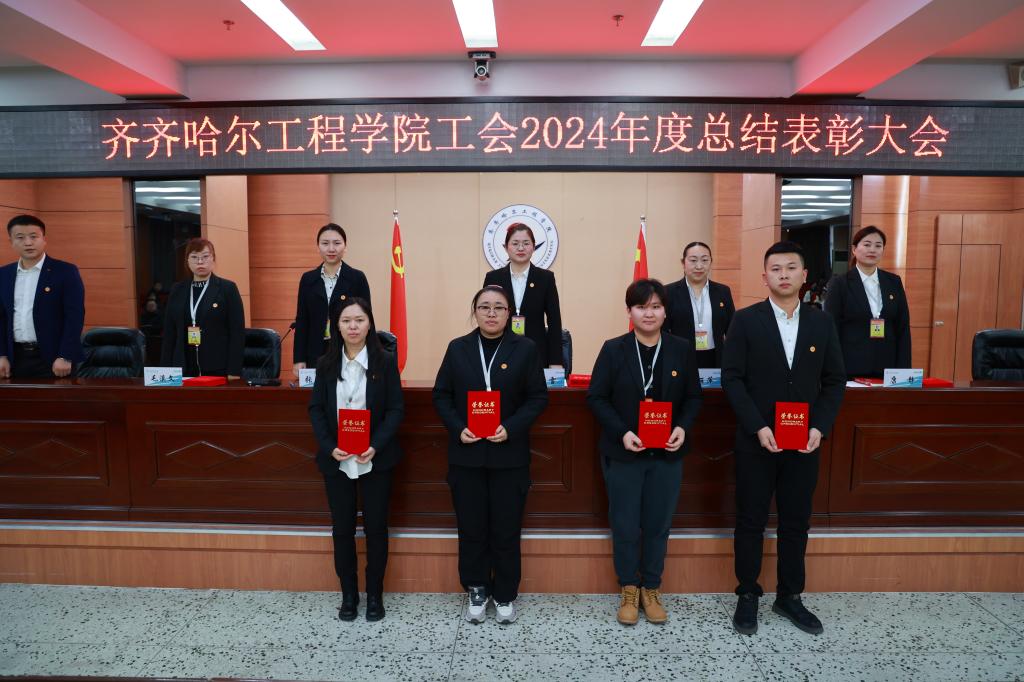 在表彰大会上,机关基层工会领取了“星级基层工会”荣誉称号奖牌,2024年度优秀工会干部、优秀工会积极分子、优秀工会财务工作者先后上台领取了证书。