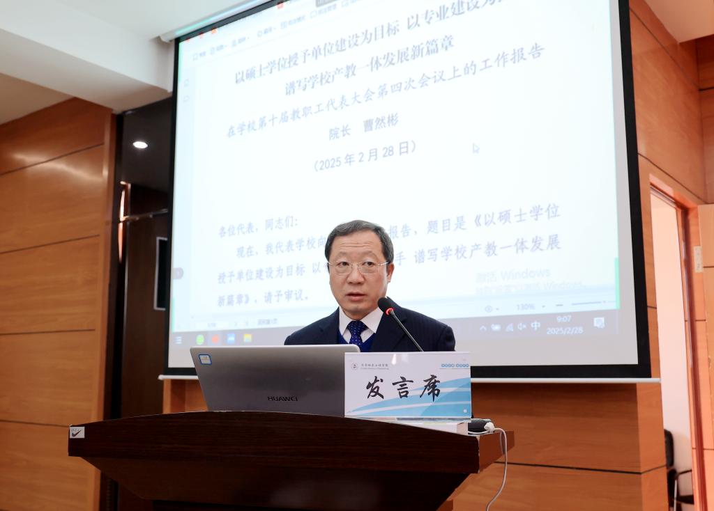 会议听取了院长、党委副书记曹然彬所作的题为《以硕士学位授予单位建设为目标 以专业建设为抓手 谱写学校产教一体发展新篇章》的工作报告。