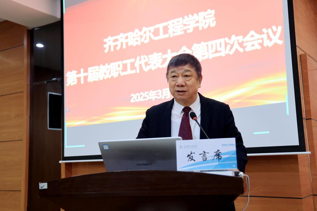 报告指出,2025年学校工作的指导思想是:坚持以习近平新时代中国特色社会主义思想为指导,深入贯彻党的二十大和二十届二中、三中全会精神,认真落实省第十三次党代会及历次全会精神,服务“4567”现代产业体系建设,助推龙江振兴发展。以硕士学位授予单位建设为目标,弘扬“教育家精神”“亮剑精神”,深化教育教学综合改革,谱写百年老校建设新篇章。2025年学校重点工作是:推进党建和思想政治工作;深化教育教学改革;持续完善学生管理;统筹实施校园建设工作四个方面17个内容。