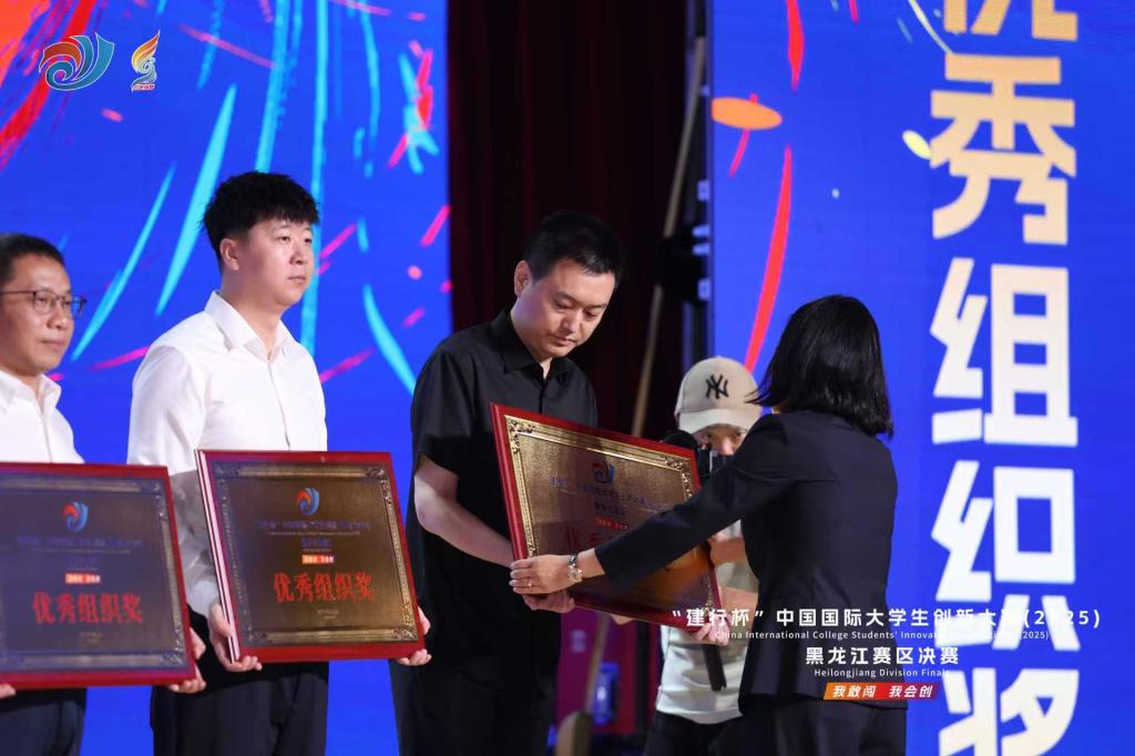 大赛开幕式上,创业学院院长单大海代表学校领取“中国国际大学生创新大赛(2024)黑龙江省赛区优秀组织奖”,该奖项是对beat365上年度赛事组织工作的高度认可和权威认定,充分反映beat365去年在赛事组织方面取得优异成绩和突出表现。