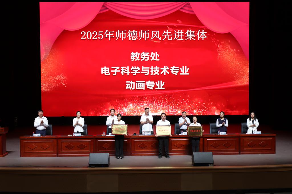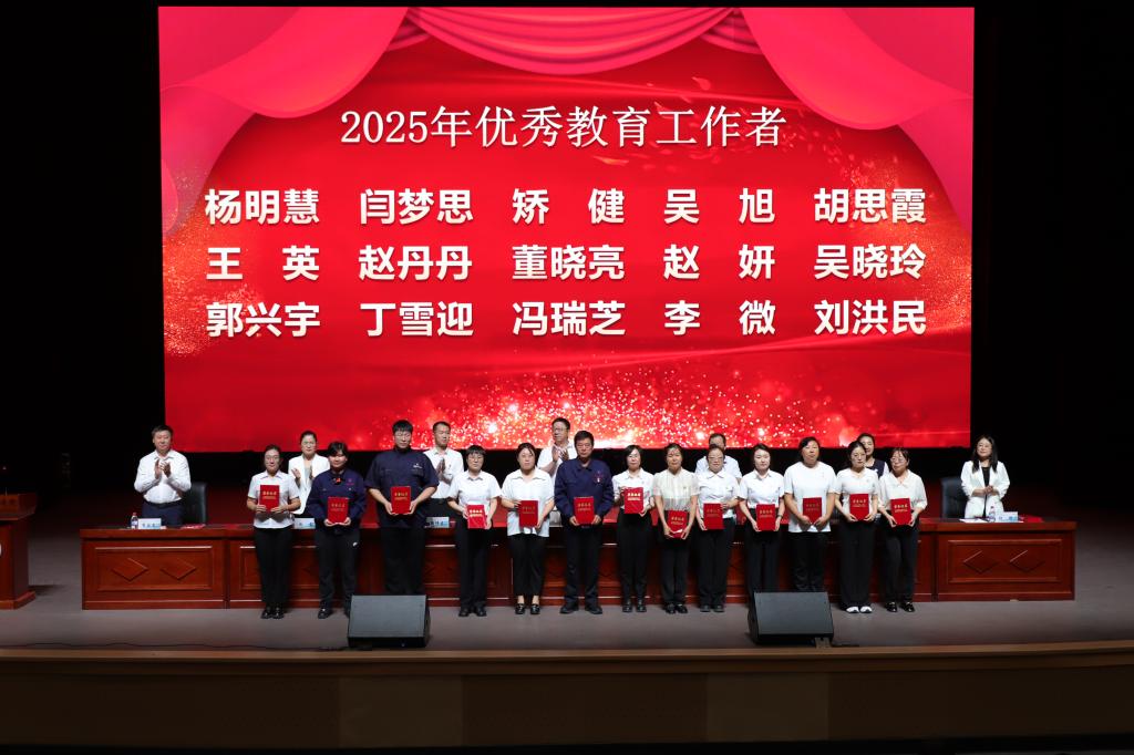 金秋九月,硕果飘香。在第41个教师节到来之际,为大力弘扬教育家精神,展现新时代教师风采,激励全体教师向先进典型看齐,9月10日下午,学校在人民会堂召开庆祝2025年教师节暨表彰奖励大会。学校领导出席会议,全体教职工参会。