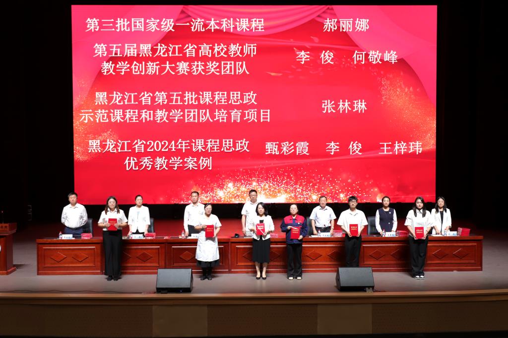 学校领导为受到表彰的先进集体代表和优秀个人依次颁奖。