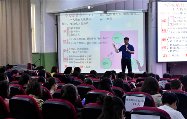 兴安职业技术学院党委书记刘文山与党委委员马桂华,党委委员、工会主席杨安洁,党委委员、宣传部部长高爱军及兴安盟教育局领导、兴安盟6所中职院校领导、该学院全体教师共计600余人聆听讲座。讲座由该学院党委副书记、院长范勇毅主持。