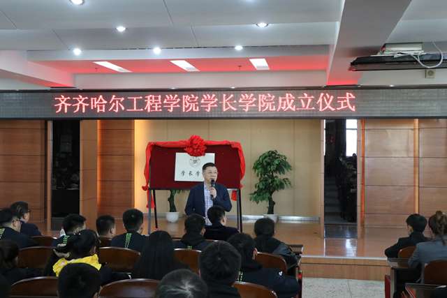 学生发展中心副主任康静主持仪式。团委书记周伟在仪式上宣读学长学院成立文件,4名学长代表共同为学长学院揭牌。