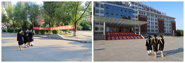 为欢迎部分毕业生返校,学校组织了毕业冷餐会,典礼后返校毕业生代表参加了“重走校园路”直播活动,他们触景生情,回顾大学生活,感恩学校和老师,并与公寓辅导员、保卫处门卫互动交流,在学校图书馆楼前拍照留念。当天晚上,由在校师生精心组织的“歌唱未来”欢送会在线举行,为毕业生祝福。