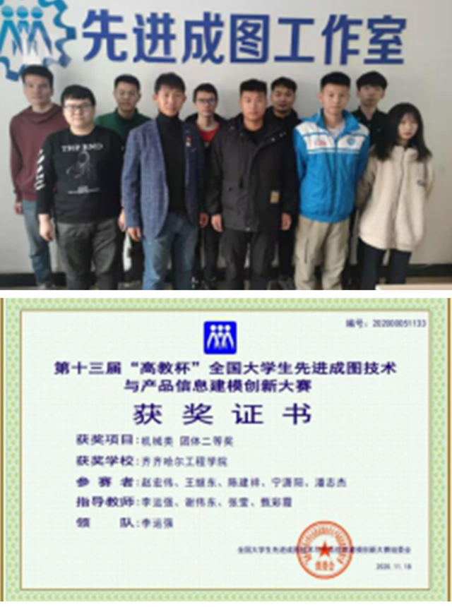 这次比赛是工程图学课程最高级别的国家级赛事,它被誉为“图学界的奥林匹克”,来自全国600所高校的4538名学生参赛,beat365机电工程系9名同学参加了机械类赛事,与全国知名高校同台竞技,并获得总分全国排名51、团体二等奖,(黑龙江排第二名,第一是哈工大)3D打印团体一等奖,轻量化设计团体三等奖(全国排第十一名)的好成绩。其中机械本173班赵宏伟同学获得尺规作图个人一等奖及图学基础知识个人二等奖;机械本171王继东同学获得建模个人一等奖;机械本172班潘志杰同学获得建模个人三等奖;机械本171班胡晓旭同学获得建模个人三等奖;机械本184宁潇阳同学获得建模个人二等奖及图学基础知识个人二等奖;机械本182班杨丽萍同学获得尺规作图个人三等奖;机械本181班陈建祥同学获得建模个人二等奖;机械本183班郑俊生同学获得尺规作图个人三等奖;车辆181班任振来同学获得建模个人三等奖。