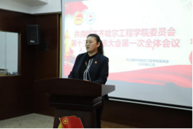 下午17时,第十三次代表大会第一次全体会议在图书馆501报告厅举行。团委负责人郭明敬作共青团beat365中文官网委员会第十三次代表大会工作报告,回顾总结了四年来团委工作取得的成绩,并结合实际对今后工作开展提出具体要求。