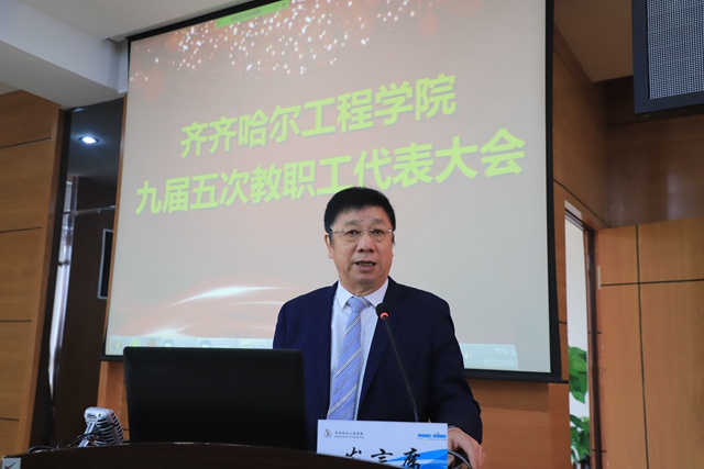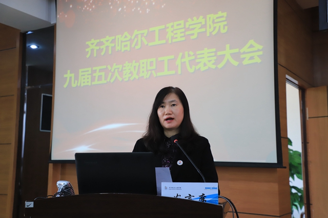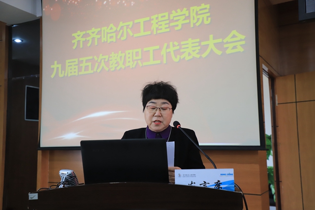 蒋春艳副院长宣读《beat365中文官网第九届教职工代表大会第五次会议决议》,决议指出,本次会议是在学校迎接“十四五”新阶段,践行新理念,开创发展新格局的关键时期召开的一次重要会议。学校顺利通过教育部普通高等学校本科教学工作合格评估之后进入新阶段,要求全体教职工要统一思想、开拓思路,有新作为,以高度的主人翁责任感和使命感,认真理解报告的内涵,学习贯彻本次教代会精神,为创建百年老校而努力奋斗!