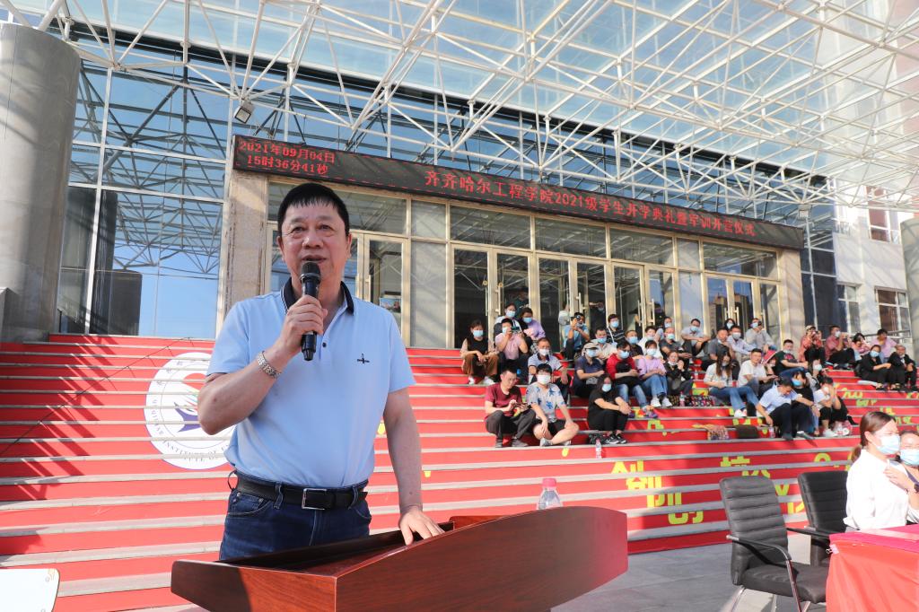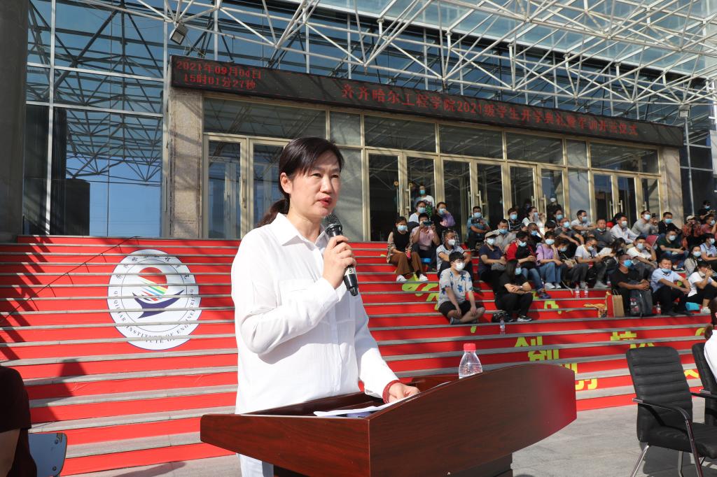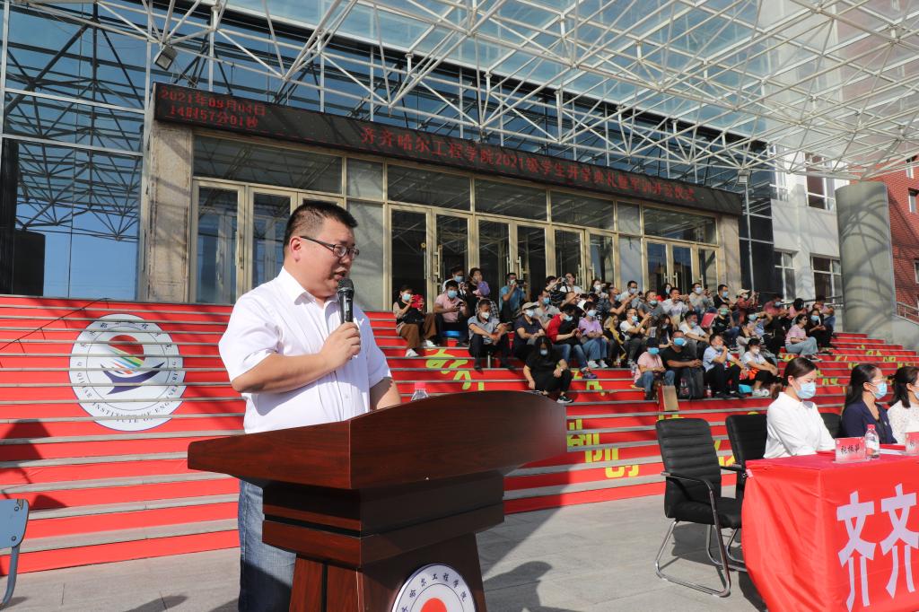 机电工程系车辆工程专业宋博洋代表2021级新同学发言: 一定要以学长和学姐们为榜样,努力进取,好好学习,不懈怠。