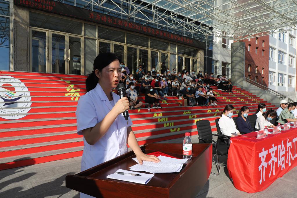 学校副院长蒋春艳宣读《2021级学生军训实施方案》。