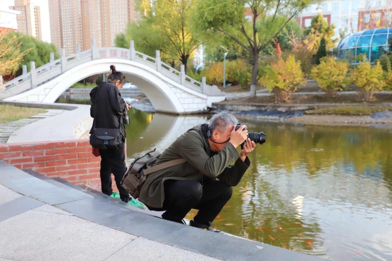 第一次参加校园秋景拍摄活动的新华社、中新社签约摄影师许兴业兴奋地说:“到处都是景,到处都有美,而到处的美景都有独特的韵味,需要细心体会,琢磨着拍。”