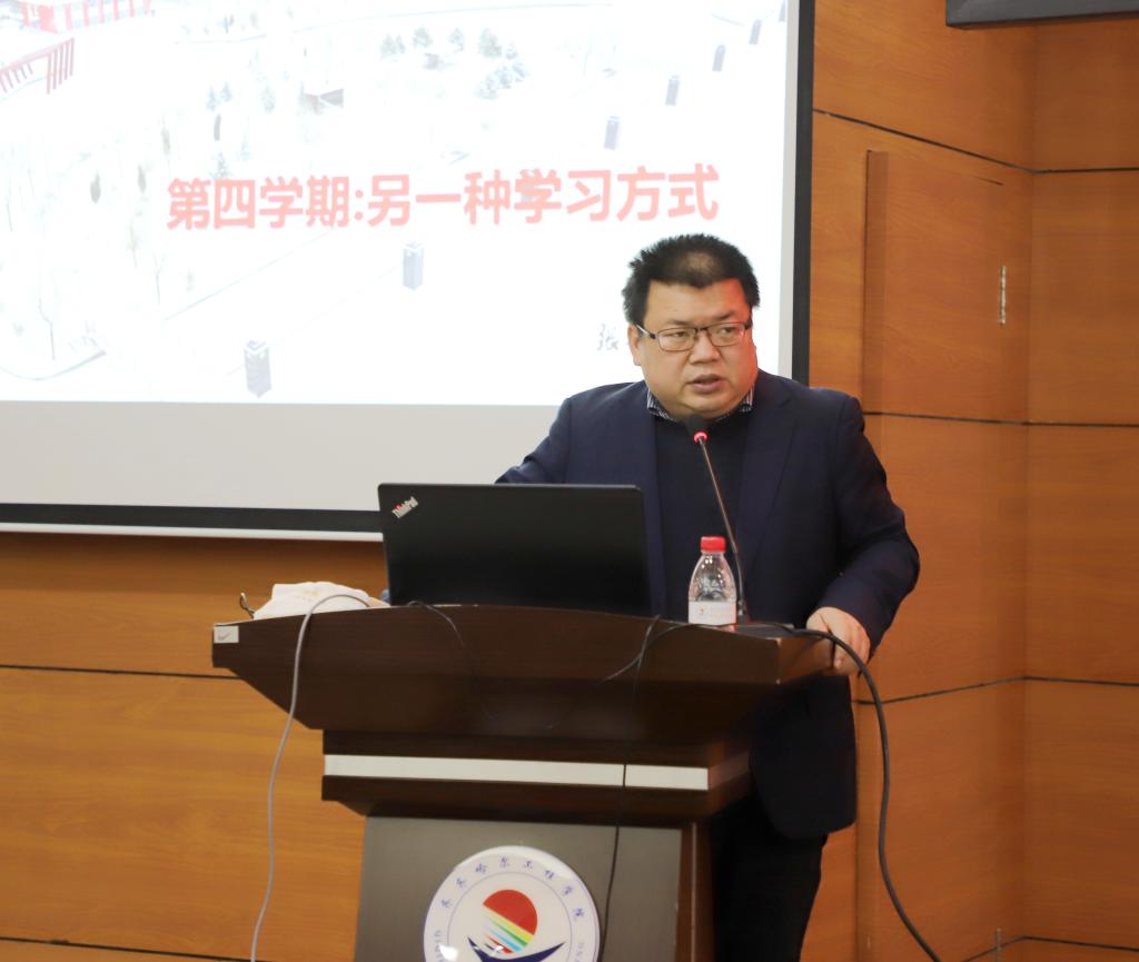 副院长张振笋以《第四学期:另一种学习方式》为题,全面系统阐述了第四学期的意义、方案设计、实施要求。张副院长从社会人才需求出发,回顾学校探索四学期制历程,阐述四学期的教育价值,从“指导思想、运行机制、组队方式、学习内容、考核方式”等方面深入解读本次四学期方案的设计逻辑;从“学习在窗外、人人是老师、世界是教材”三个方面生动说明社会实践的积极意义;从“方案理解透、学习任务明确、考核方式清楚”和四学期落地实施、师生遵守疫情防控要求等方面提出具体要求。