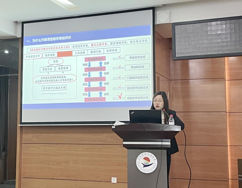 张处长从国务院下发的《深化新时代教育评价改革总体方案》出发,强调了改进结果评价、强化过程评价、探索增值评价、健全综合评价的重要性,提出了关注课堂教学实施,把控课堂教学质量的要求。她指出,课堂教学等级评价应从显性的教学文件、课堂教学,以及隐性的教学目标达成度等,全方位关注本学期教师的整体课程设计、课堂实施情况、门课实施情况,以及下学期教师的开课资格审查、门课学习手册编制、运用与课堂实施情况。