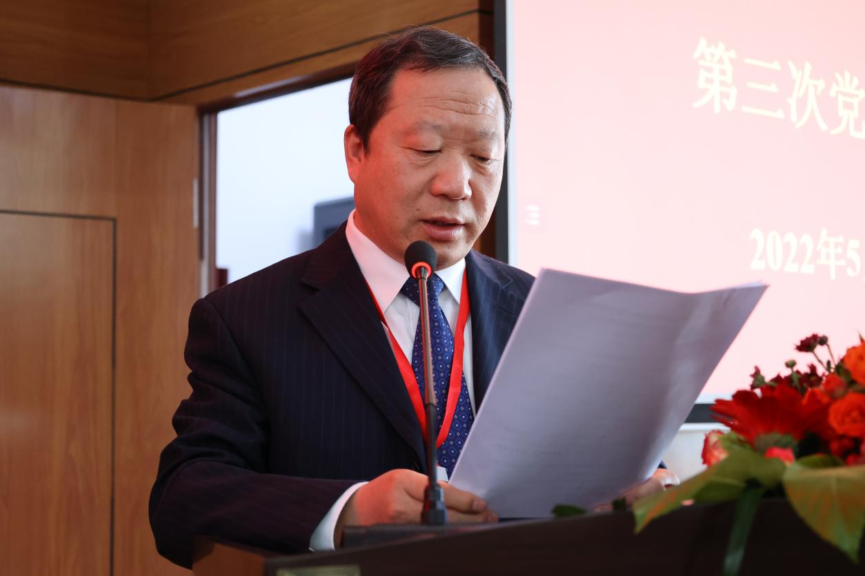 顺应新时代、把握新机遇、开启新征程,5月28日,中国共产党beat365中文官网第三次党员大会圆满完成各项议程,在图书601报告厅胜利闭幕。大会选举产生新一届党委委员和纪委委员,通过关于第三届党委会报告的决议、纪律检查委员会工作报告的决议。院长、党委副书记曹然彬主持。