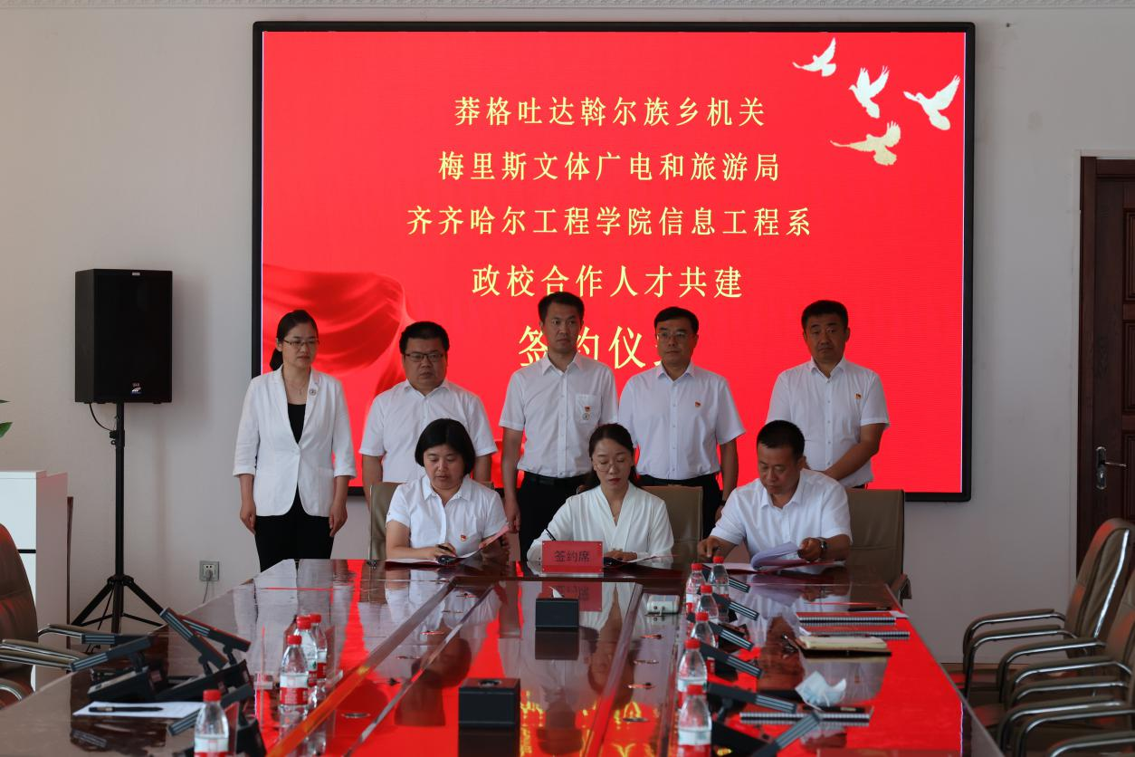 随后,信息工程系与区文体广电和旅游局、梅里斯莽格吐乡签订了人才共建协议并挂牌。