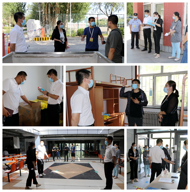 在校领导整体部署检查内容、工作要求之后,检查组成员分成两组,检查工作正式开始。检查组分别到学校南门、北门、三味食堂、学生公寓、教学区、实验室、汽车大楼、齐三机床等,从开学教学准备、疫情防控落实、实验室安全、教学设施运行与维护、环境卫生及师生生活服务保障等方面,进行了全面检查。