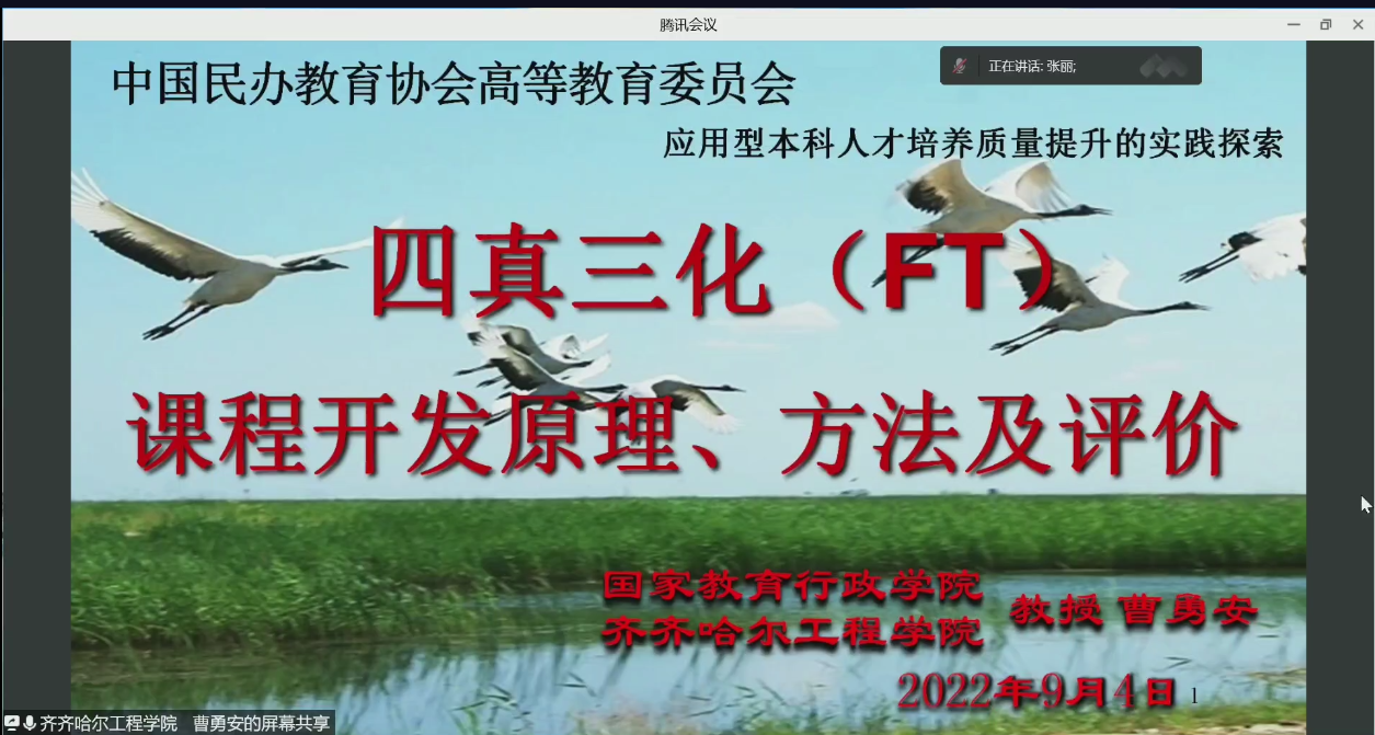 9月4日,学校理事长曹勇安应邀出席在线举办的一流民办本科高校建设论坛,并作题为《四真三化(FT)课程开发原理、方法及评价》的讲座。