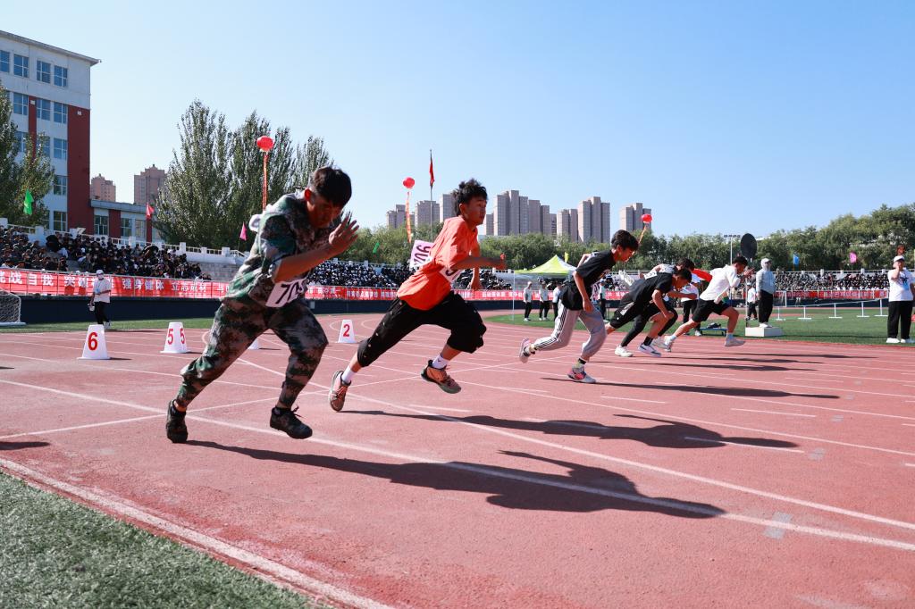 创校校长、理事长曹勇安发百米竞赛第一枪!随着响亮的发令枪声,百米短跑拉开运动会比赛序幕。