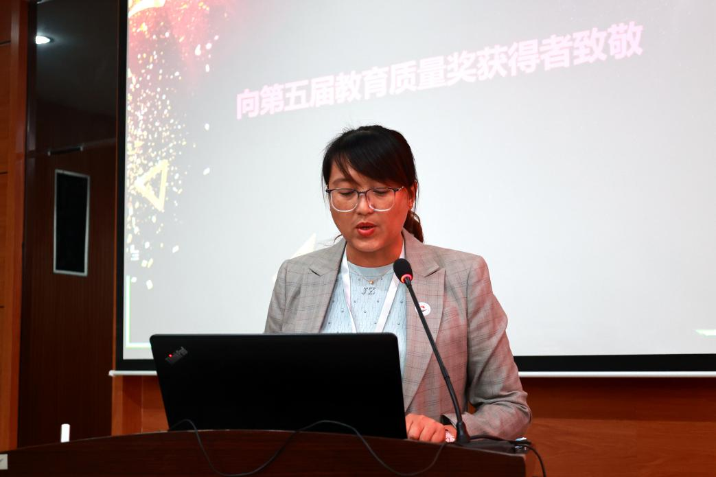 教学质量奖获奖教师刘玉洁、育人质量奖获奖教师杨鹏代表全体获奖教师对学校给予的肯定表示感谢,并分别结合实际工作,谈成长历程,分享教育心得,表示将坚定教育初心、牢记育人使命,以乘势而上的决心,做学生学习知识、创新思维、锤炼品格、奉献祖国的引路人,为学校教育事业发展贡献力量。