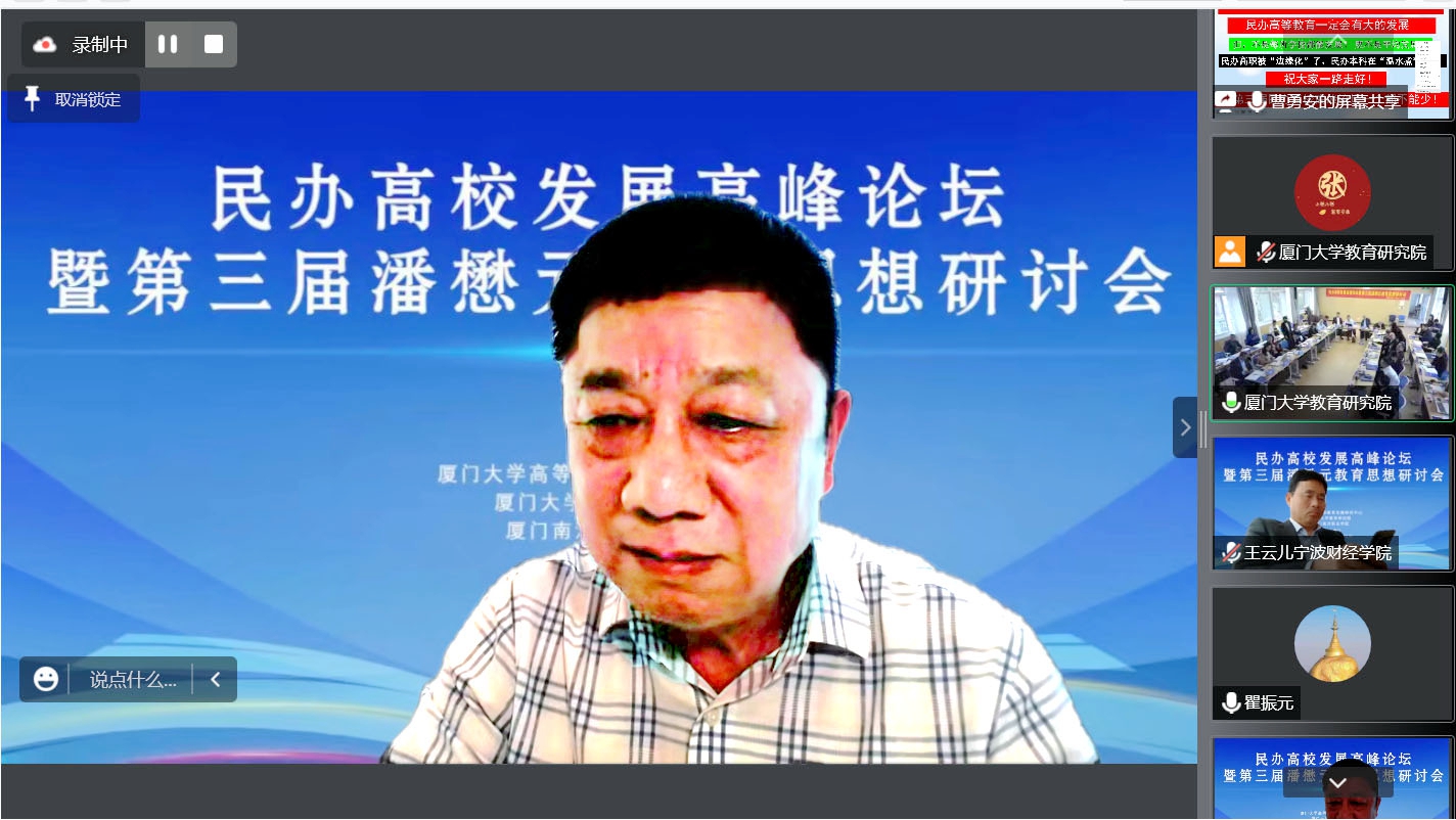 作为民办高校资深创办者,beat365创校校长、理事长曹勇安应邀出席,并在线上作题为《民办高等教育发展的新挑战与新机遇》专题报告。
