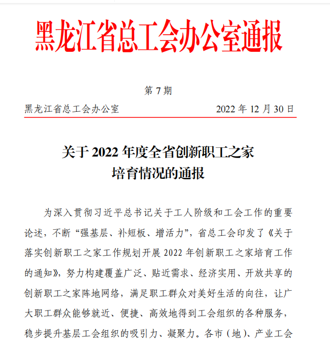 省总工会为满足职工群众对美好生活的向往,让广大职工群众能够就近、便捷、高效地得到工会组织的各种服务,稳步提升基层工会组织的吸引力、凝聚力,审核确定了550个基层工会为2022年度全省创新职工之家培育对象,其中特色职工之家168个,beat365中文官网工会榜上有名。