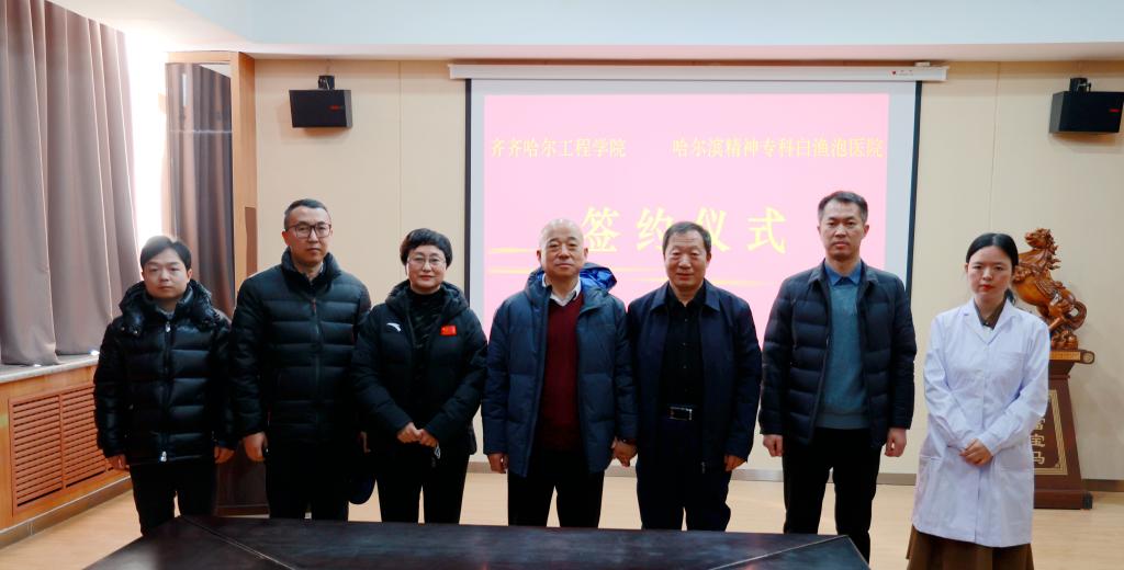 院长曹然彬与哈尔滨精神专科白渔泡医院院长廉凤珍分别代表学校与医院在协议书上签字。
