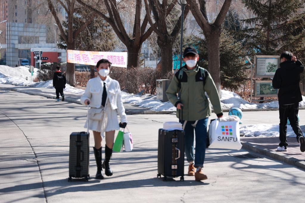 校园内悬挂勤奋励志、温暖贴心的条幅,欢迎学子们从五湖四海归来。