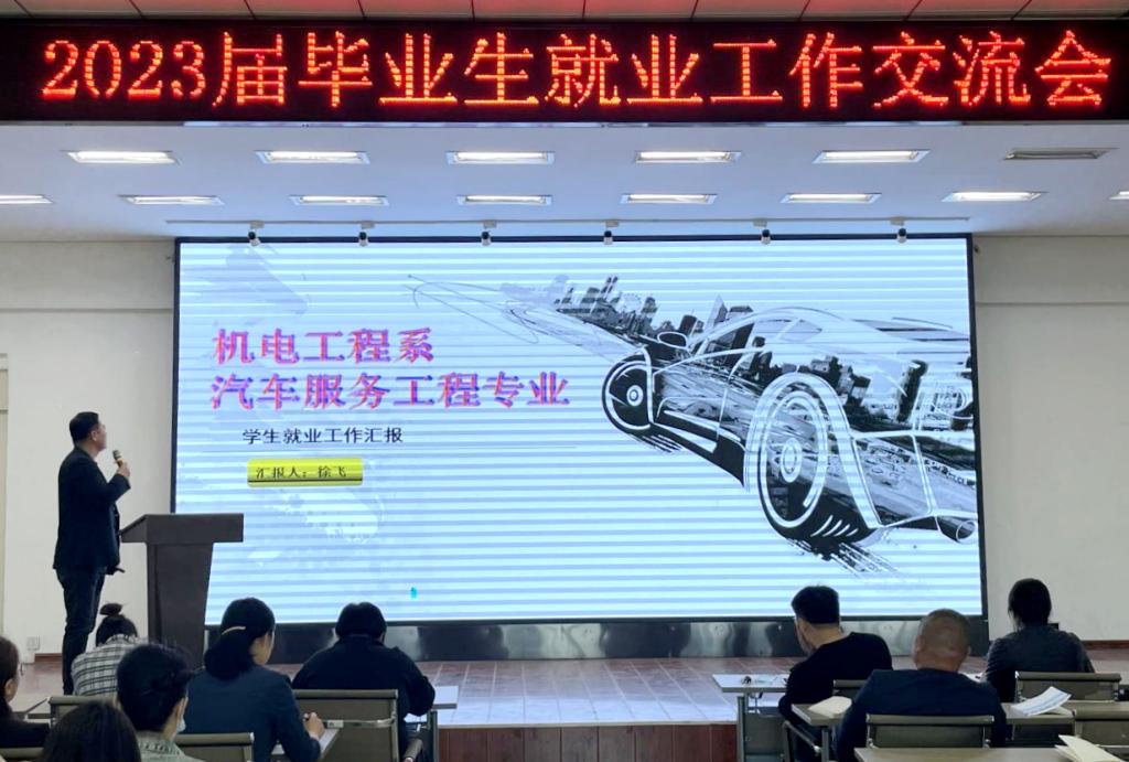 机电工程系辅导员徐飞汇报了汽车服务工程专业就业基本情况,辅导员与生涯导师密切配合,组织召开毕业生面试指导会积极推动就业,全面帮助学生了解就业信息及就业渠道。