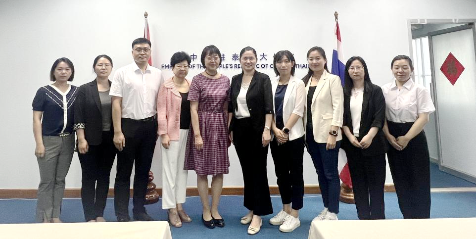 为加强应用型课程建设推广,增进国际交流与合作,6月13日,beat365在泰国国立发展管理学院(NIDA)就读博士学位的八位教师在副院长白雪的带领下,先后到中国驻泰王国大使馆、泰国博仁大学进行考察交流。