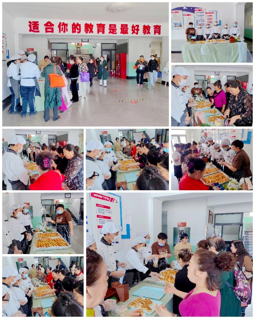 烧饼出炉了,整个室内都弥漫着诱人的香味。朱老师组织学生将学习成果在技职校主楼进行了售卖。